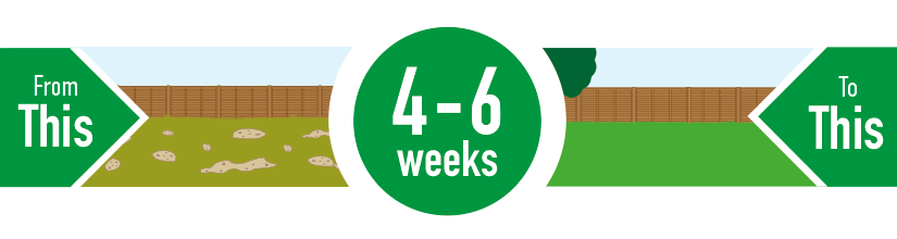 You can expect to see your lawn or grass greatly improve within 4-6 weeks with burn patches often disappearing far